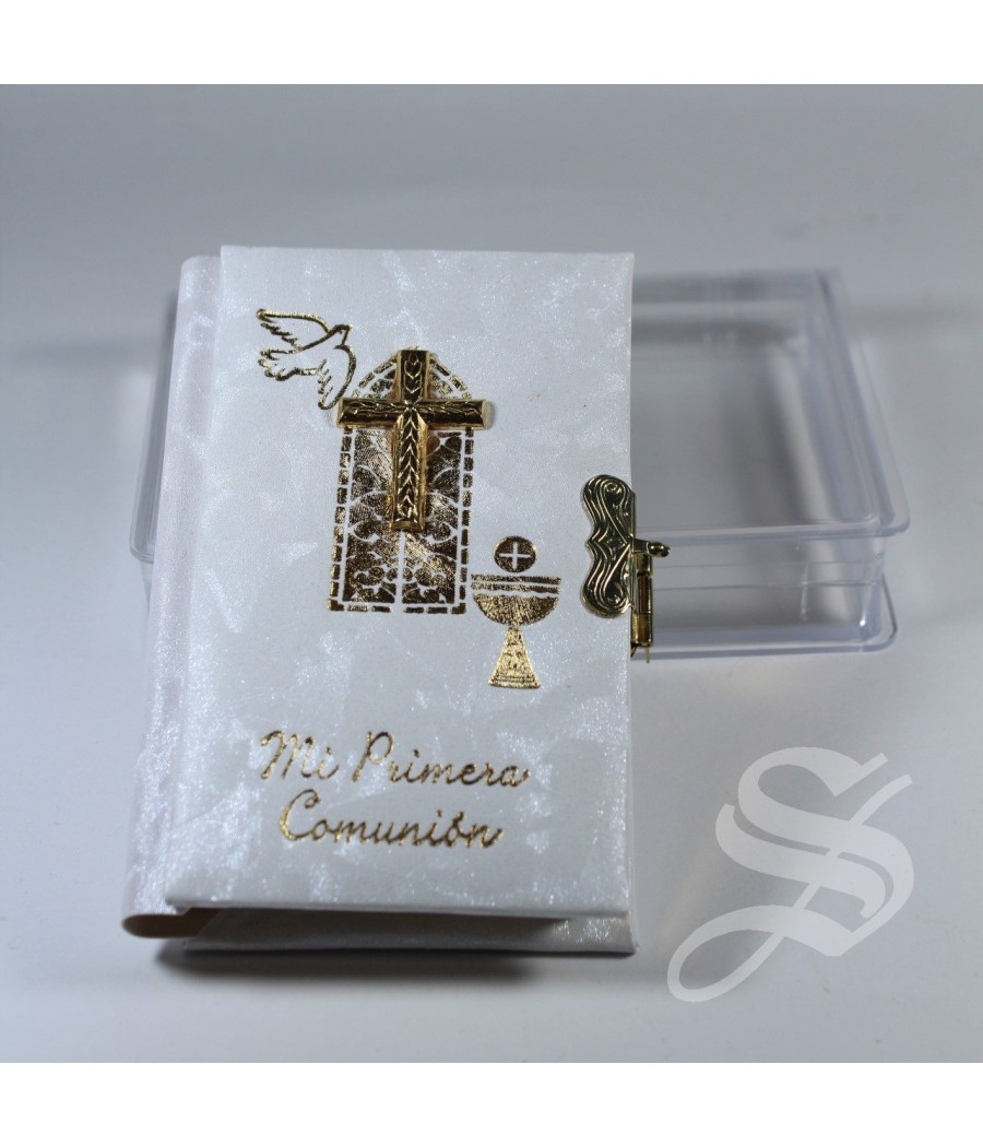 MISAL COMUNION NIÑO CALIZ RELIEVE 11 X 7 CM TELA IMITACION NACAR