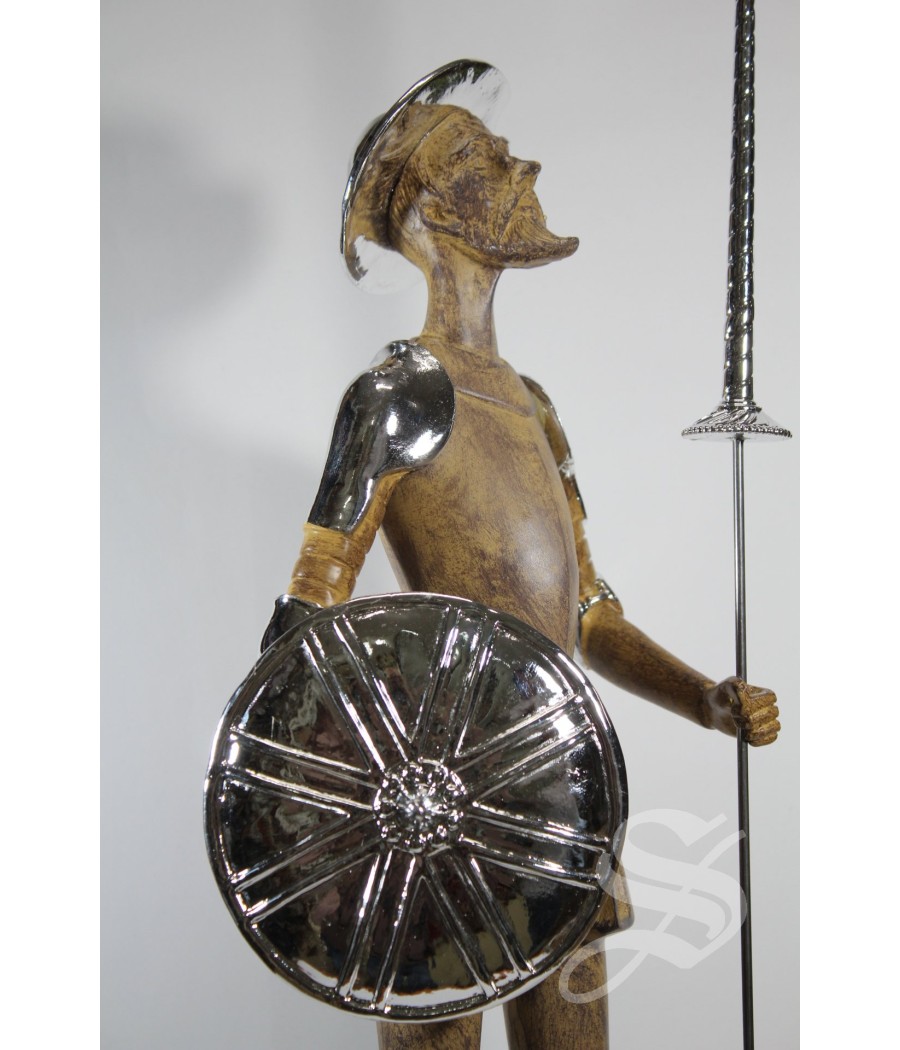 QUIJOTE RESINA IMITACION MADERA DETALLES PLATEADOS. 16.5 X 15 X 58.5 CM